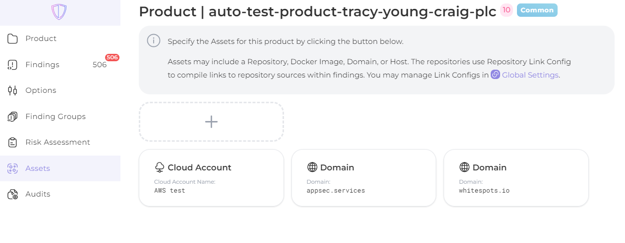 If the product has already been [created](https://docs.whitespots.io/appsec-portal/features/working-with-products), add its Asset data. To do this, select the product on the Product page