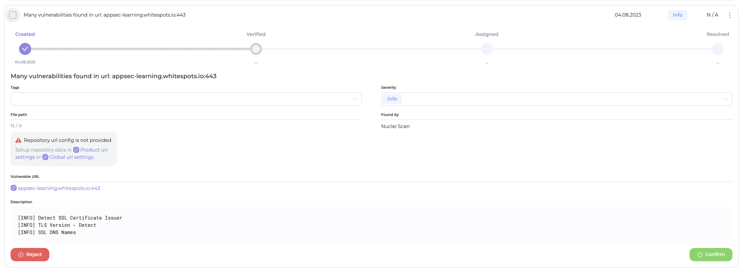<figure><img src="https://3069717380-files.gitbook.io/~/files/v0/b/gitbook-x-prod.appspot.com/o/spaces%2F-M81VrXQrfSaYjNIFOtt%2Fuploads%2F7b0LrXdzwsgpXkWwbT96%2F%D0%B3%D1%80%D1%83%D0%BF%D0%BF%D0%B5%D1%80_1.png?alt=media&#x26;token=255ab91a-abbd-4ff8-85ac-f37b63dbb9d2" alt=""><figcaption><p>Example of a finding with a grouping element <strong>URL</strong></p></figcaption></figure>