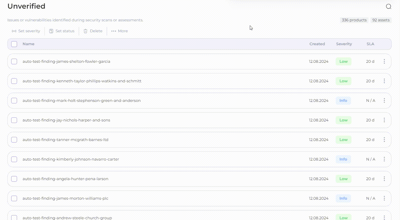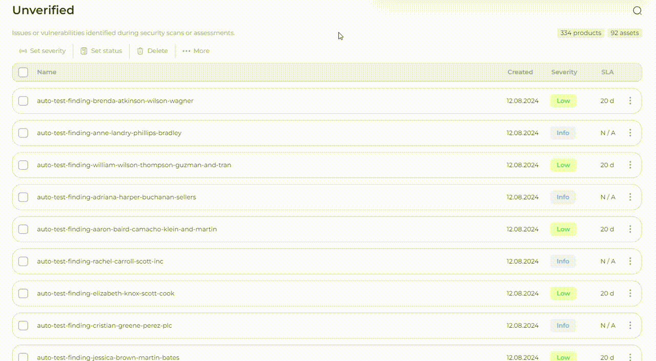 You can also **sort** the list of findings in ascending or descending order by clicking on the column header: