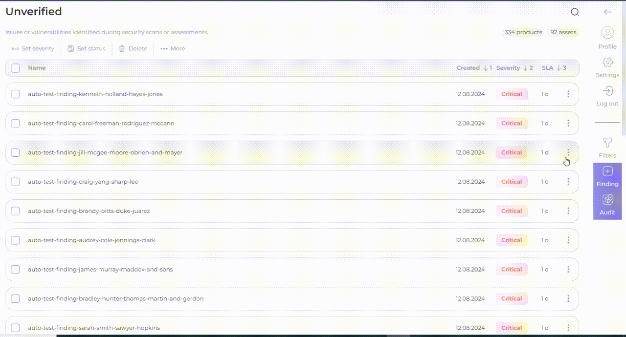 **AppSec Portal** provides **all kinds of filters** to handle large numbers of reports: