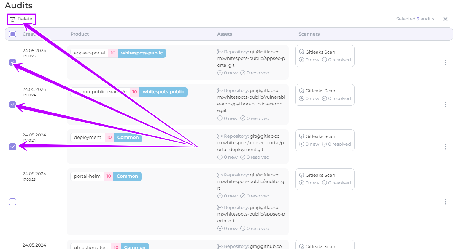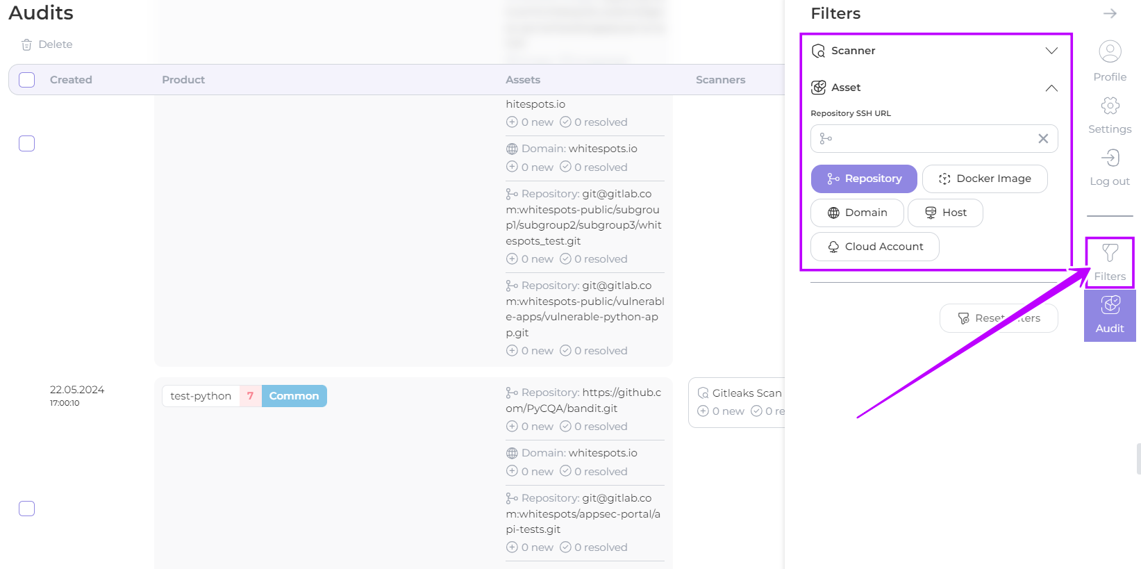 You can find the audit you are looking for by filtering the results by Scanner name or/and Asset name