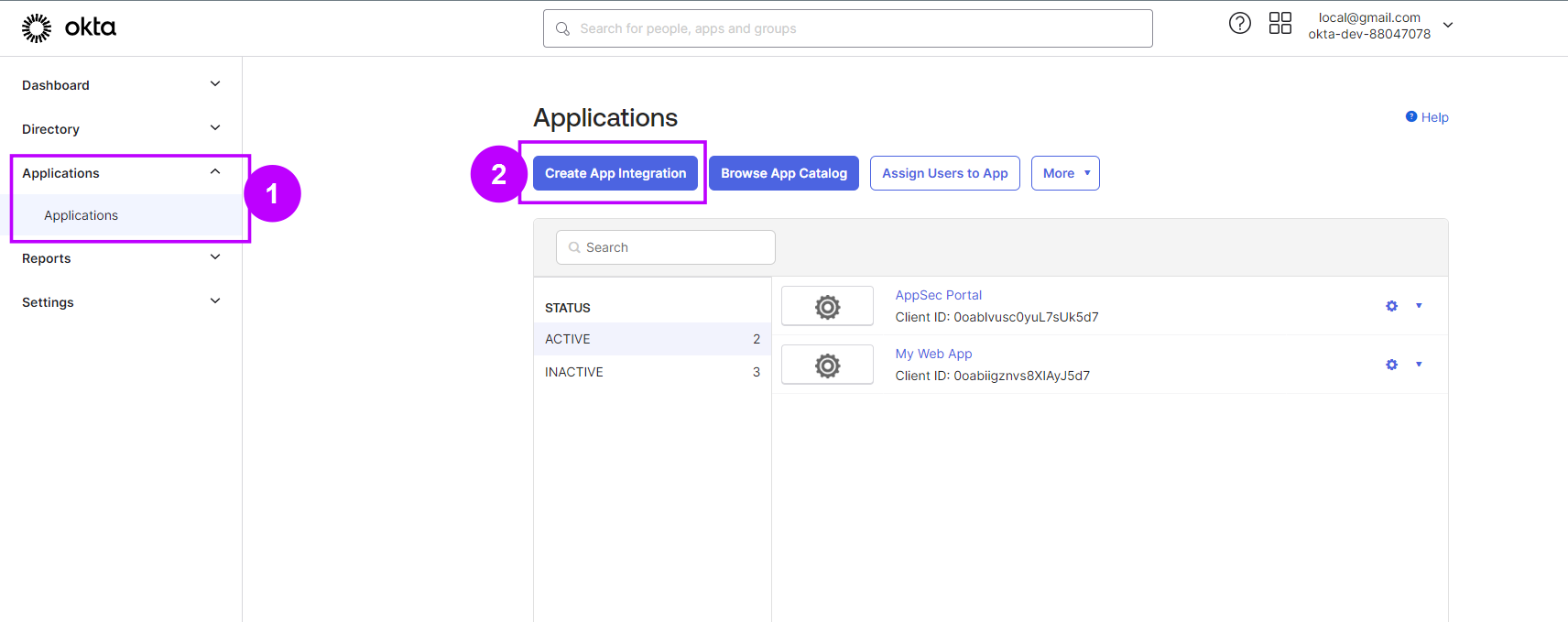 1. In the Okta admin panel, navigate to the "**Applications**" tab.